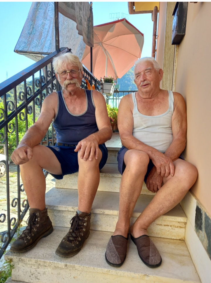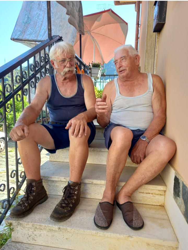 Due amici a SanPeo, seduti sugli scalini, all’ombra, nel fine pomeriggio, di un’afosa domenica di luglio.