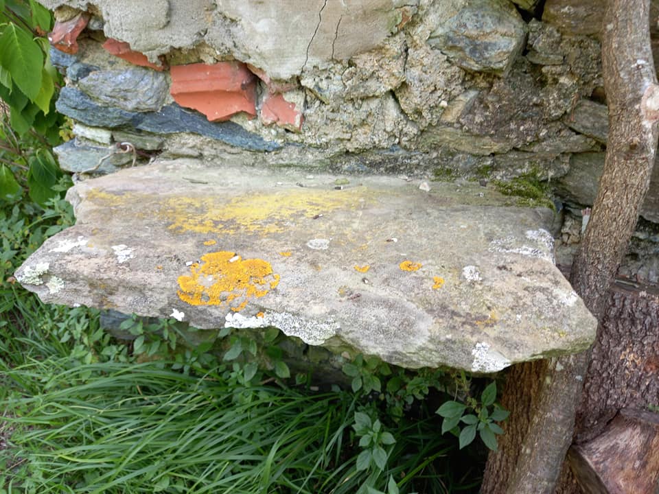 Infissa in basso, nel pilastro, una lastra di pietra, una posa per chi in questo punto, scaricava dalle proprie spalle il pesante fardello del carico che doveva trasportare, per un momento di riposo e di preghiera.