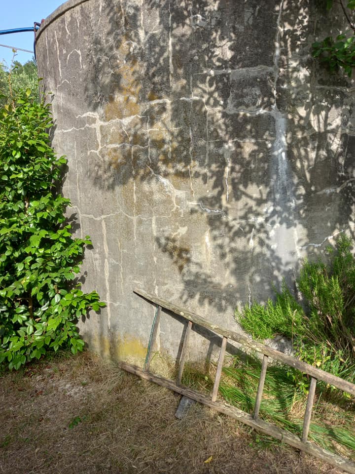 I grandi terrazzamenti, la grande vasca rotonda, fatta costruire da Luigi il papà di Bruno, per raccolta dell’acqua, eretta nel punto più alto.