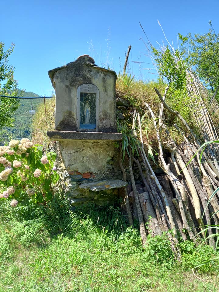 Bruno, mi racconta dell’antica edicola, eretta chissà quando, al culmine della salita del Brichetto, contenente una statua della Madonna, acquistata a Savona e fatta consacrare nel 1965, da sua mamma Palmira.