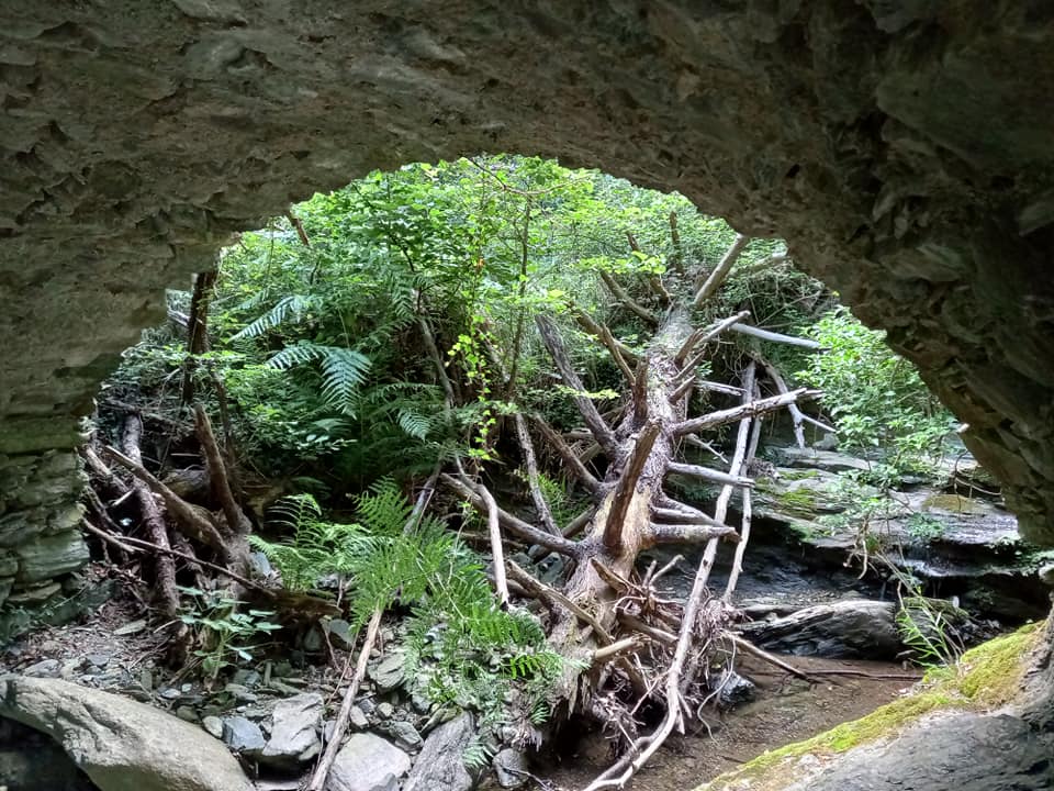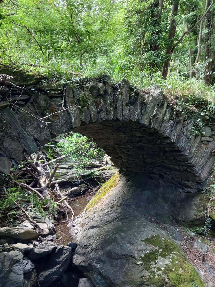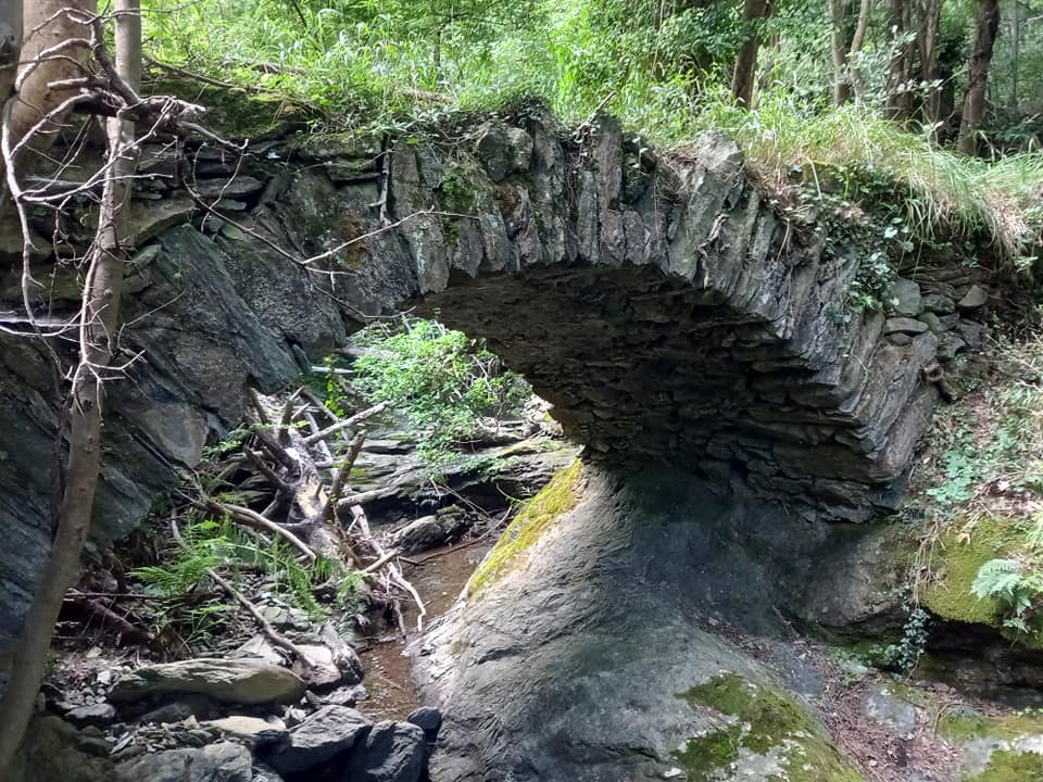 In un ambiente molto suggestivo, quasi primordiale, il ponte di buona fattura senza muretti di protezione, oltrepassa il rio, poco prima di una cascata con relativo laghetto.
