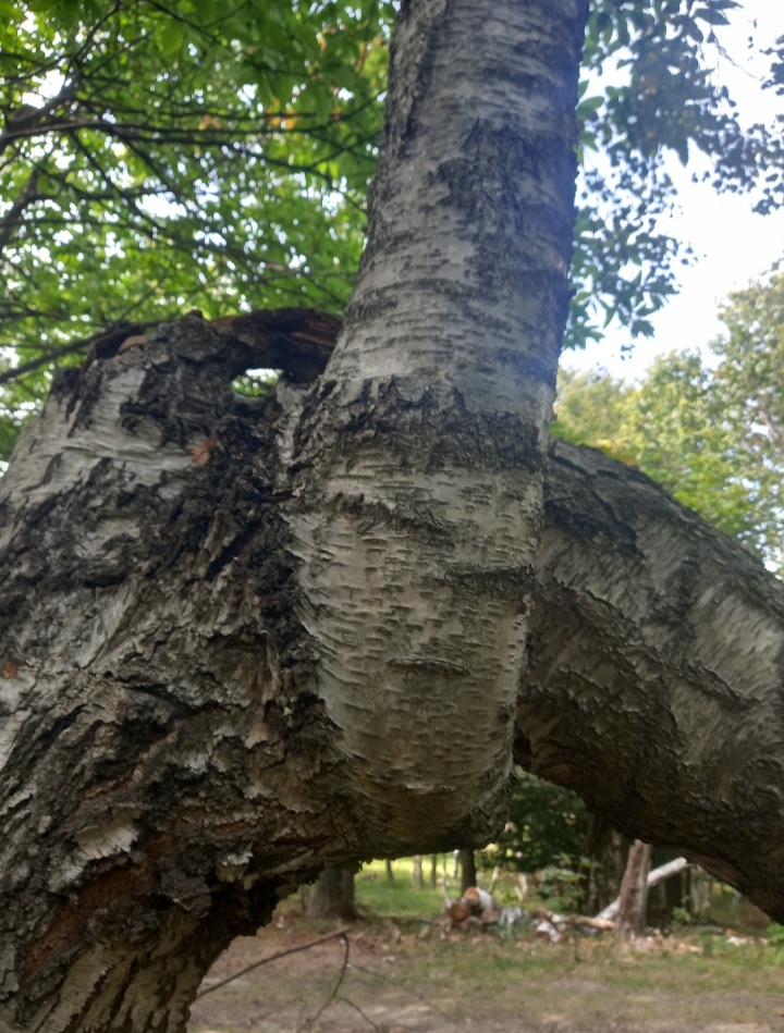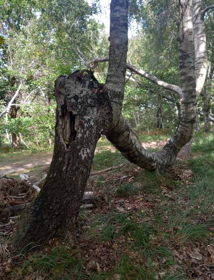 Una betulla che si era spezzata molti anni fa ha fatto crescere un pollone che ha raggiunto l’altezza di almeno 6/7 metri.