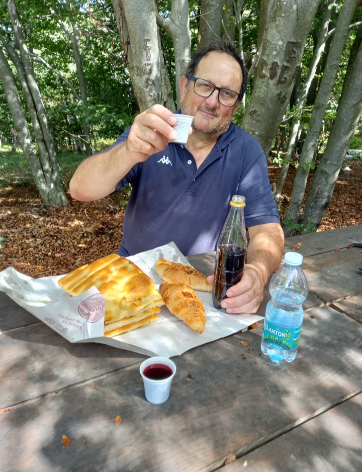 L’area attrezzata è lì che ci aspetta e allora ci rifocilliamo cun figassa e briosc de Vase e quarche gottu de vin .