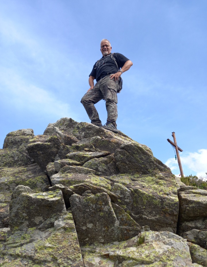 Intorno alla croce c’è una grande radura rocciosa, oggi discretamente ventosa, con evidenti tracce di scariche elettriche da fulmine