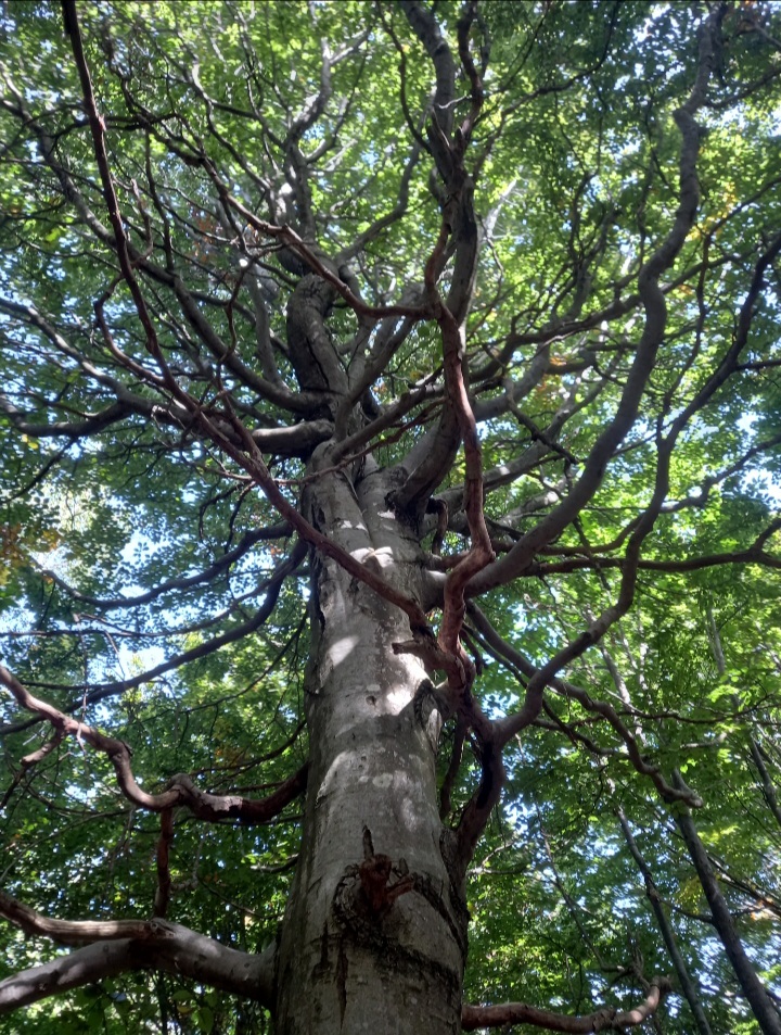Decidiamo di dare un’occhiata nelle zone circostanti e ci addentriamo in questa bella faggeta.