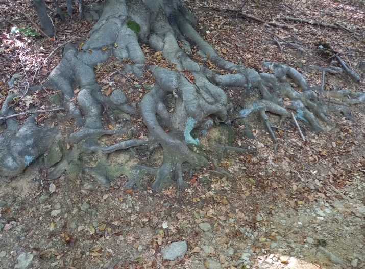 Stessa sensazione, anche quando ci si sofferma ad osservare l’incredibile apparato radicale esposto di un faggio.