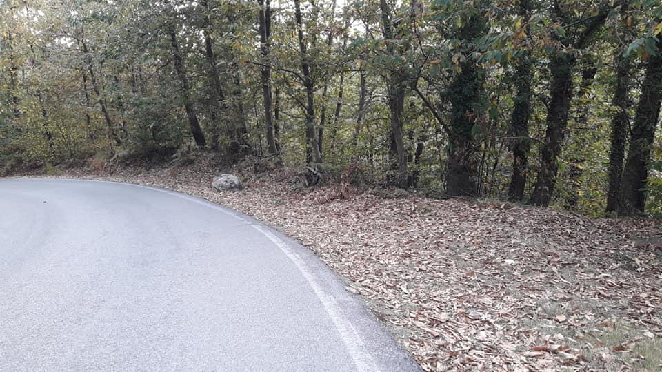Anche la temperatura oramai è autunnale, auto e moto al loro passaggio sollevano nuvole di foglie già cadute dagli alberi.