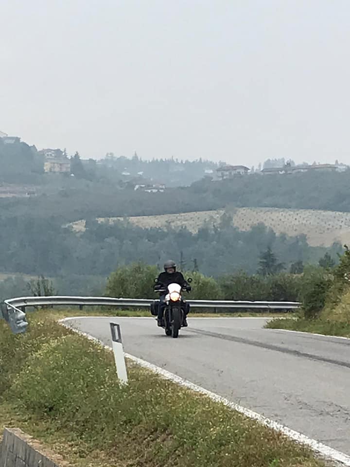 Una breve colazione al bar dei motociclisti di Montezemolo e poi alla rotonda si svolta in direzione di Murazzano.