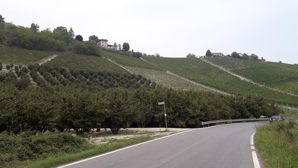 Riprendiamo il tour in direzione di S.Stefano Belbo, si scende nel fondo valle e qui la fanno da padroni, estesi noccioleti, anche loro tutti ben ordinati, potati e ogni pianta alla giusta distanza, le nocciole prodotte, sono tutte destinate alla Ferrero di Alba.