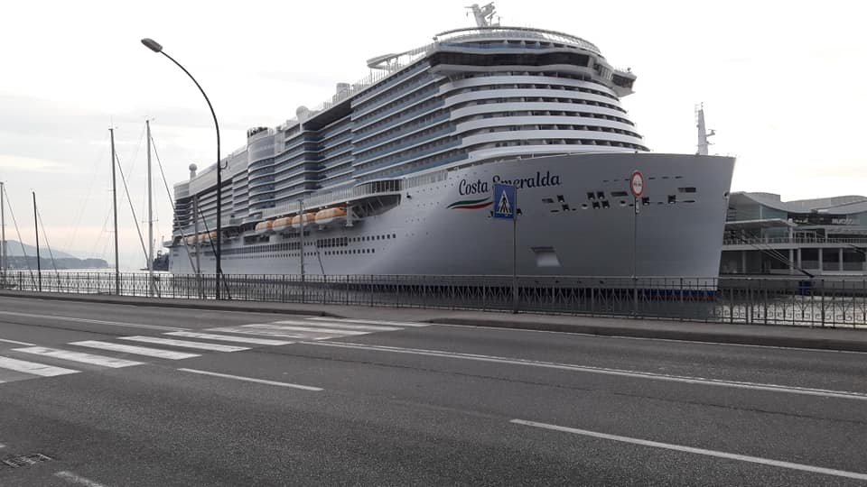 A Savona la Costa Smeralda è ormeggiata in porto e in ta“ciassa du Pesciu” stanno restaurando la fontana.