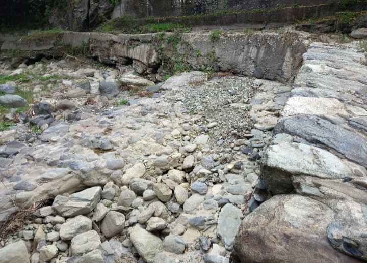 L’ingresso è interdetto, ma con un ampio giro, si può entrare, arrivando dall’alveo del Teiro, ancora in secca, cosa insolita per questo periodo dell’anno.