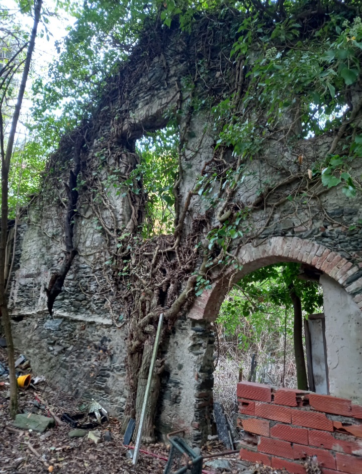 Si passa davanti a Savunea, anche questo pregevole edificio di archeologia industriale è stato conquistato dai rampicanti e nascosto alla vista da alberi con alto fusto.