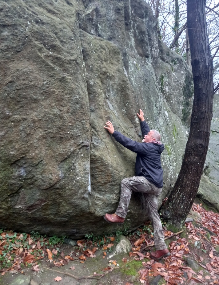 Nella foto sopra, li vediamo intenti a studiare gli appigli naturali presenti su una roccia.