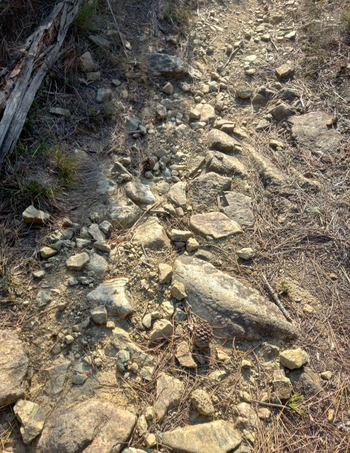 Francesco ritrova labili tracce di strada, che diventano sempre più marcate con l’affioramento di alcuni Ciappin de Pria.