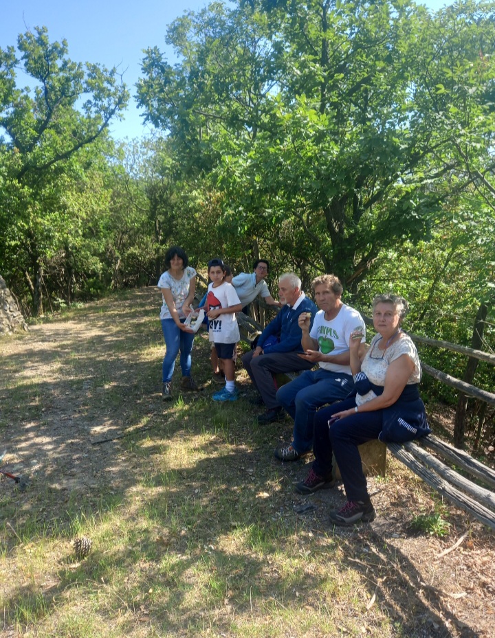 Seduti sulla panca in un bel momento conviviale, si chiacchera di un po’ di tutto si scoprono parentele si tramandano i racconti delle persone che hanno vissuto in questa zona.