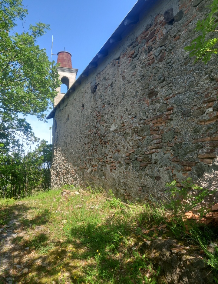 Sono evidenti modifiche in altezza e forse la chiesa è l’ampliamento di una preesistente cappella campestre