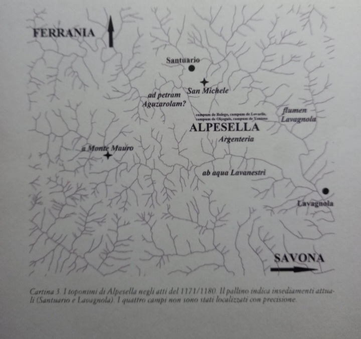 Grazie a un documento della Società Savonese di Storia Patria, sono a conoscenza di una mappa, dove si evidenzia, una chiesa, di S.Michele di Alpesella, nella valle del Flumen Lavagnola, zona del Santuario di Savona.