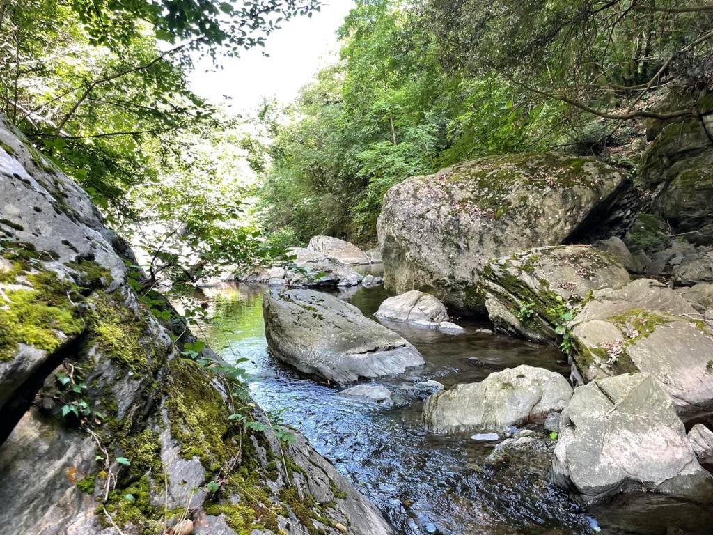 Mi stupiscono sempre, le megalitiche rocce tipiche della zona di Campolungo, arrivate da chissà dove, che stringono e deviano il corso del Fiume.