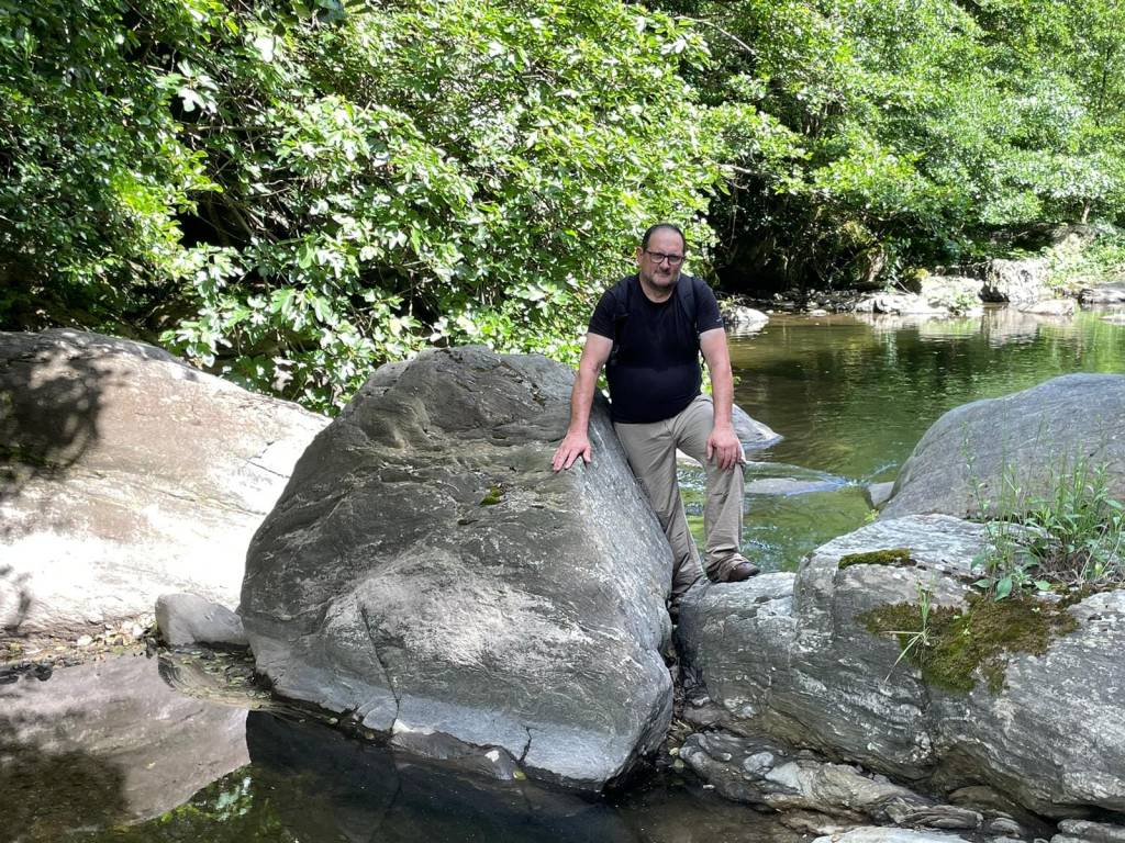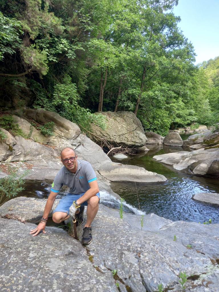 Gian senza problemi, sempre a suo agio a passare da una pietra all’altra, io lo seguo appesantito e a volte preferisco il guado con i pantaloni al ginocchio.