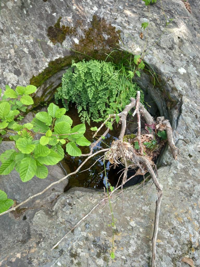 E un foro dalla vaga forma di cuore, scavato dai gorghi dell’acqua di oltre un metro di diametro, con il fondo nero di foglie e profonda chissà quanto.