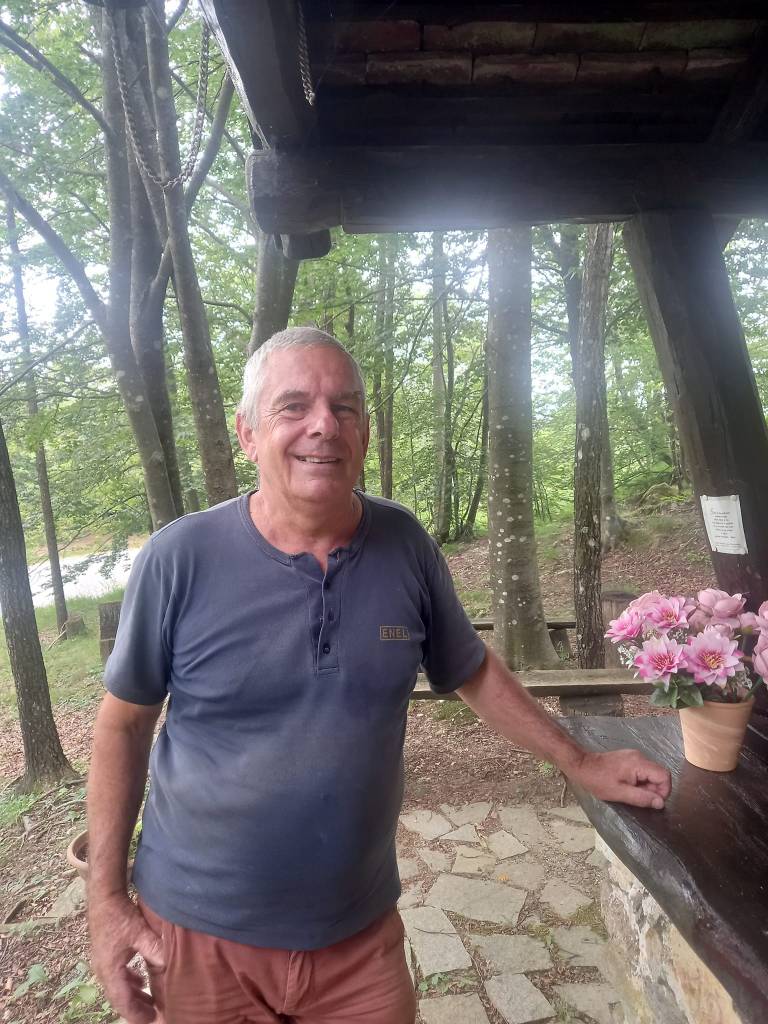Con Fabrizio facciamo visita ad una sua cugina e al ritorno ripassiamo dall’Edicola de Ciapè der Mei, qui alcune persone stanno sorreggendo una persona anziana, sul sentiero per raggiungere l’Edicola.
