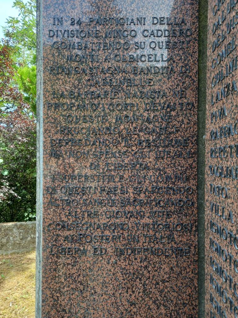 Storia e riflessioni ad Olbicella davanti al monumento ai Partigiani, qui il 10 ottobre 1944 “Aria” un ragazzo di 16 anni fu costretto ad assistere all’impiccagione di 7 partigiani, suoi compagni nella Guerra di Liberazione.