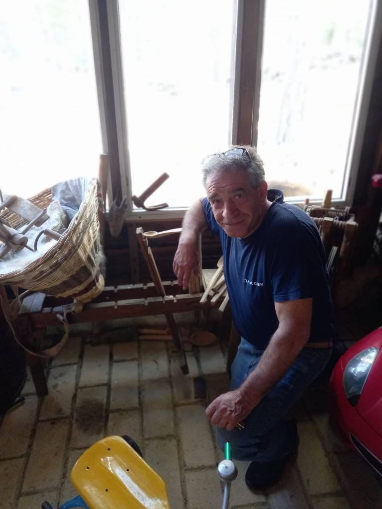 Auto, moto, oggetti da lui personalmente restaurati nella sua attigua officina.