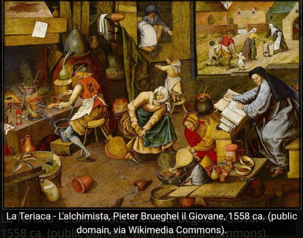 La Teriaga è stato il piu famoso e antichissimo intruglio, di ben 54 ingredienti compresa la vipera, che secondo chi lo produceva, era capace di combattere i veleni prodotti dal corpo umano e alleviare mal di testa, di stomaco e i disturbi della vista e dell’udito.