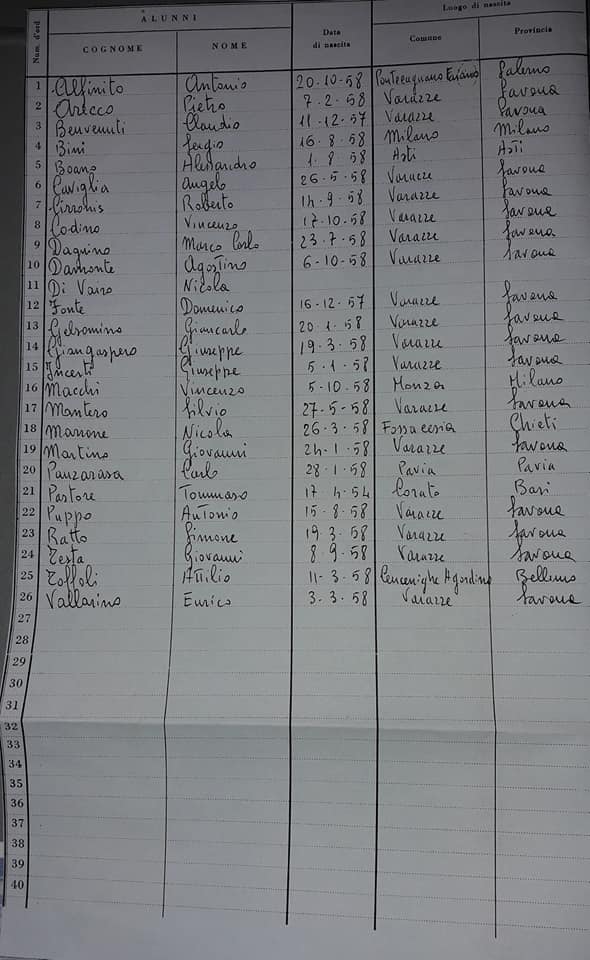Eravamo in 26, quel giovedi primo ottobre del 1964 nellla 1.A, con il maestro Fausto Buffarello.