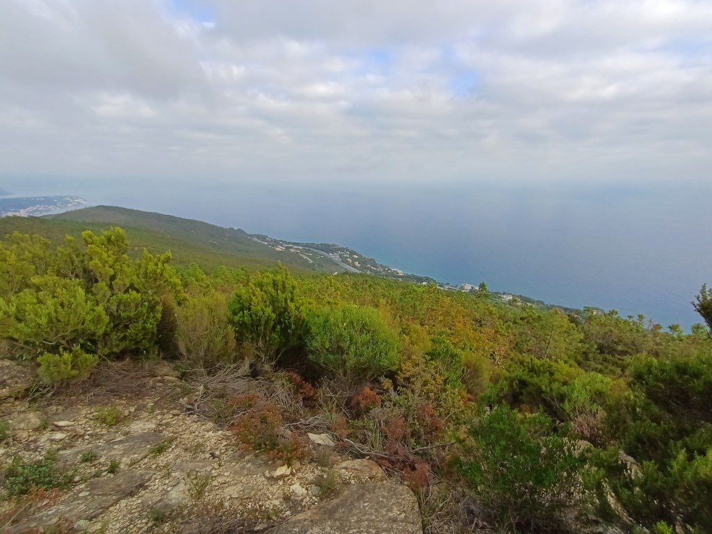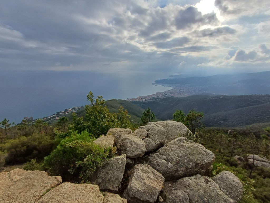 Davanti a noi lo spazio infinito del mare e la vista spettacolare delle vette del Beigua.