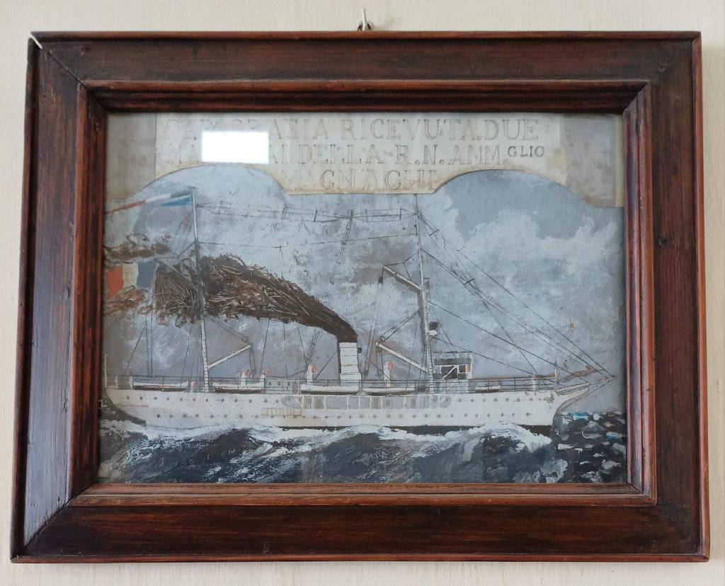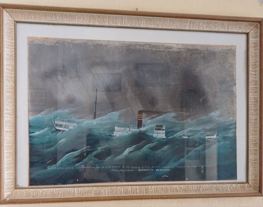 Alcuni ex voto, presenti alla Guardia, raffigurano dei piroscafi lottare contro i marosi, con i pennacchi di fumo nero delle caldaie spinte al massimo, per navigare nel mare in tempesta.
