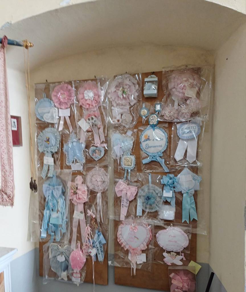 Ci sono i quadri che raffigurano le grazie ricevute o altre P.G.R conservate in una teca, sotto forma di modellini navali, crocifissi ecc.