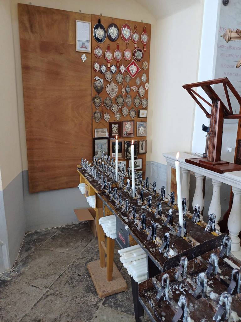 La cera sciolta delle candele consumate, testimonia la devozione attuale a questa chiesa, tributata dalla nostra comunità.