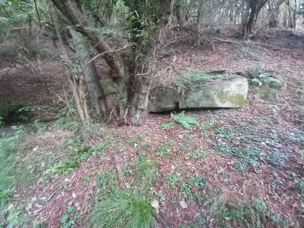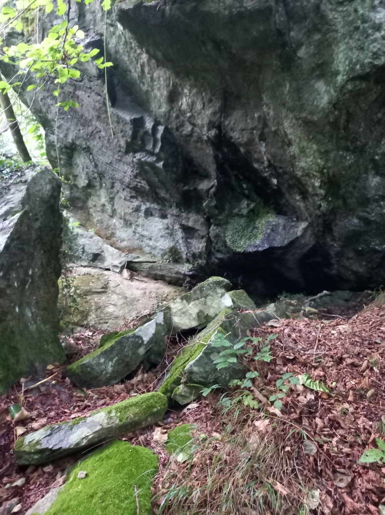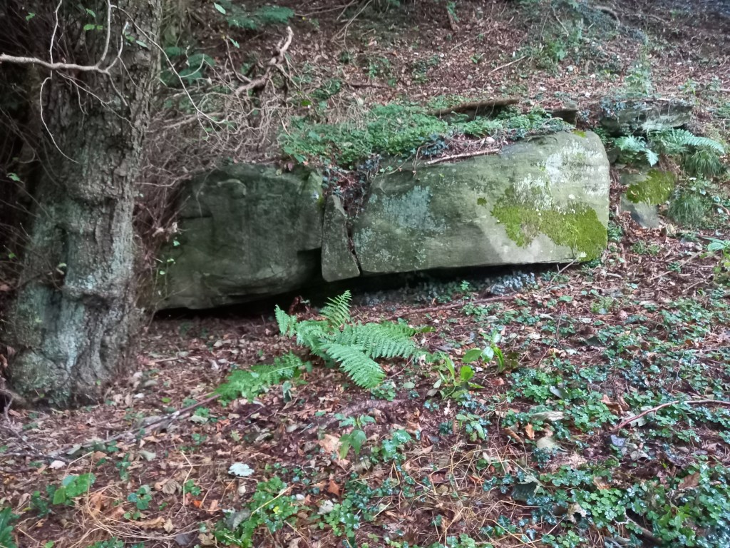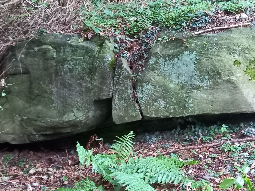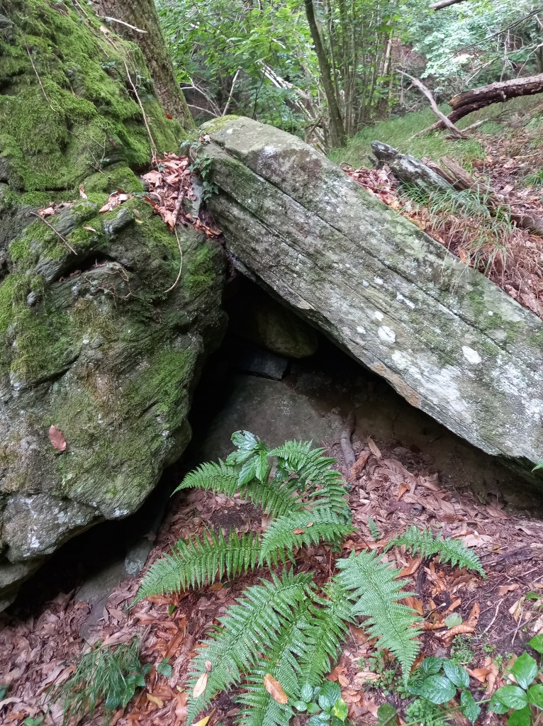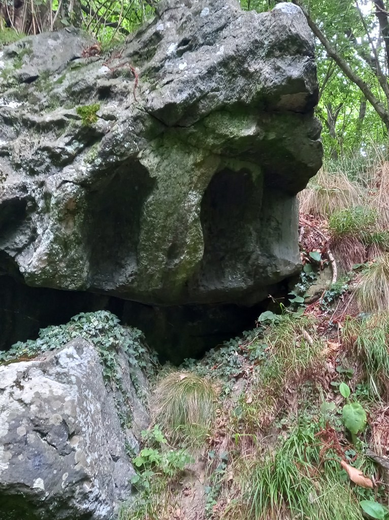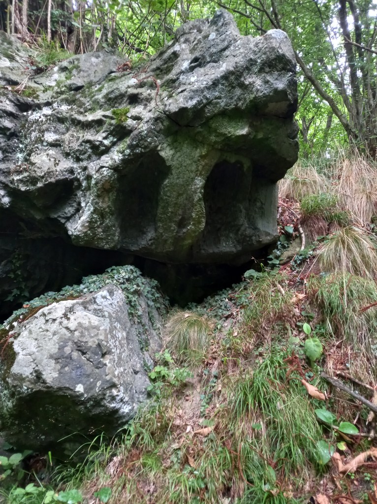 La pietra è mancante della parte inferiore, che da origine ad un piccolo anfratto.