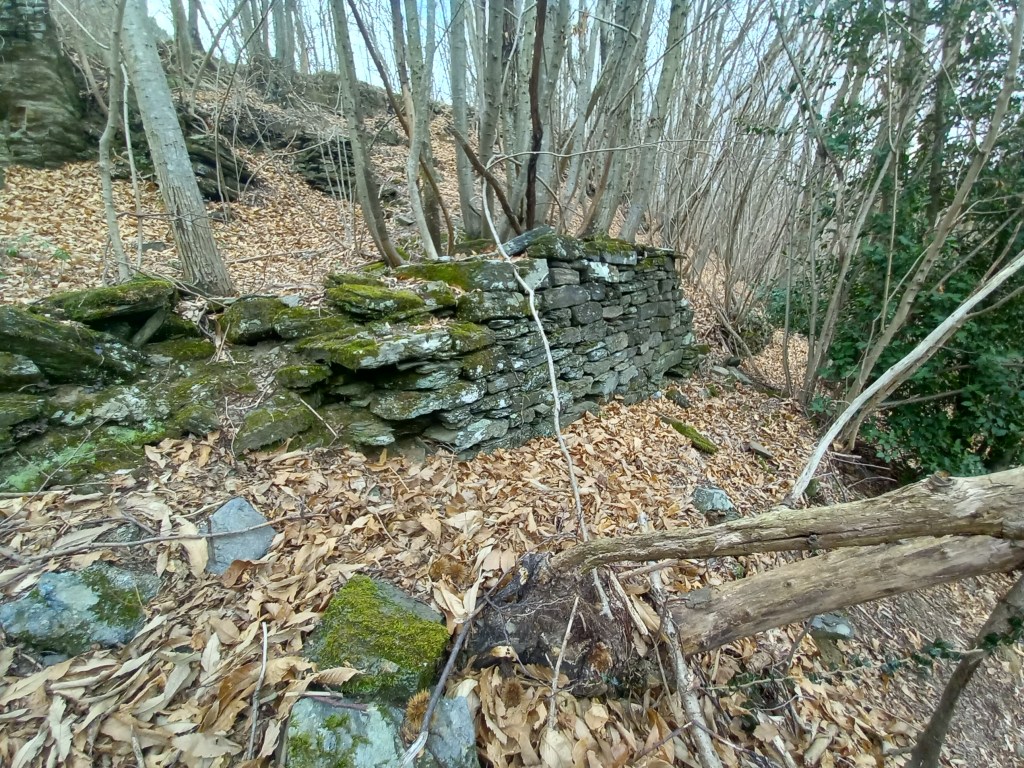 Ma la caratteristica principale, di questa zona, sono i ruderi di case, cascine ed essiccatoi per castagne, ho contato una decina di questi edifici, ognuno con il suo nome e la sua storia, ma altri devono essere da qualche parte, nel folto del bosco e scendendo laggiù, verso u Rian dell’Ommu Mortu.