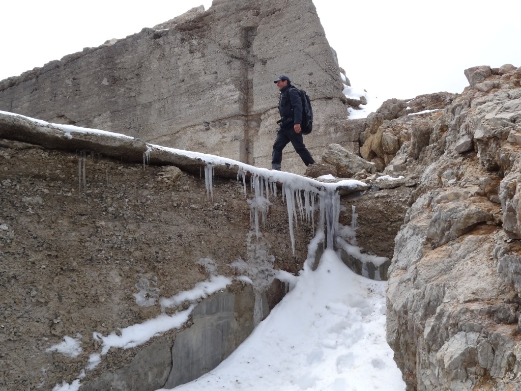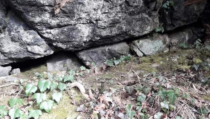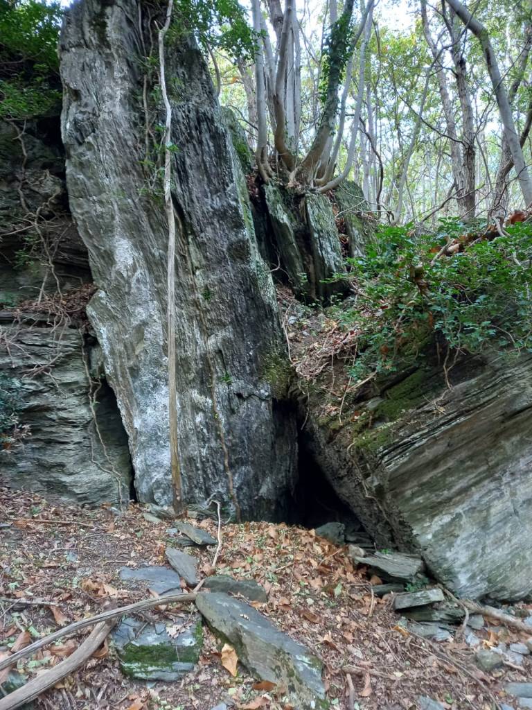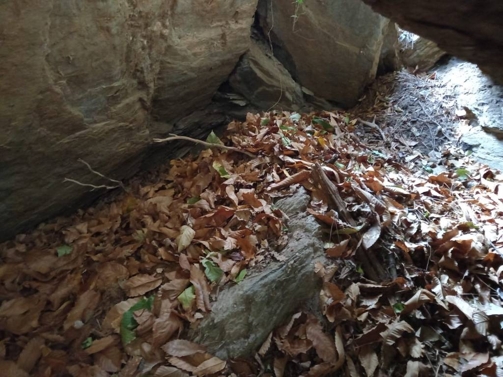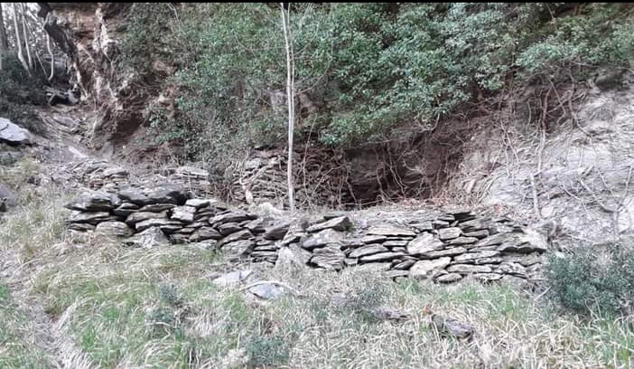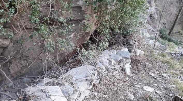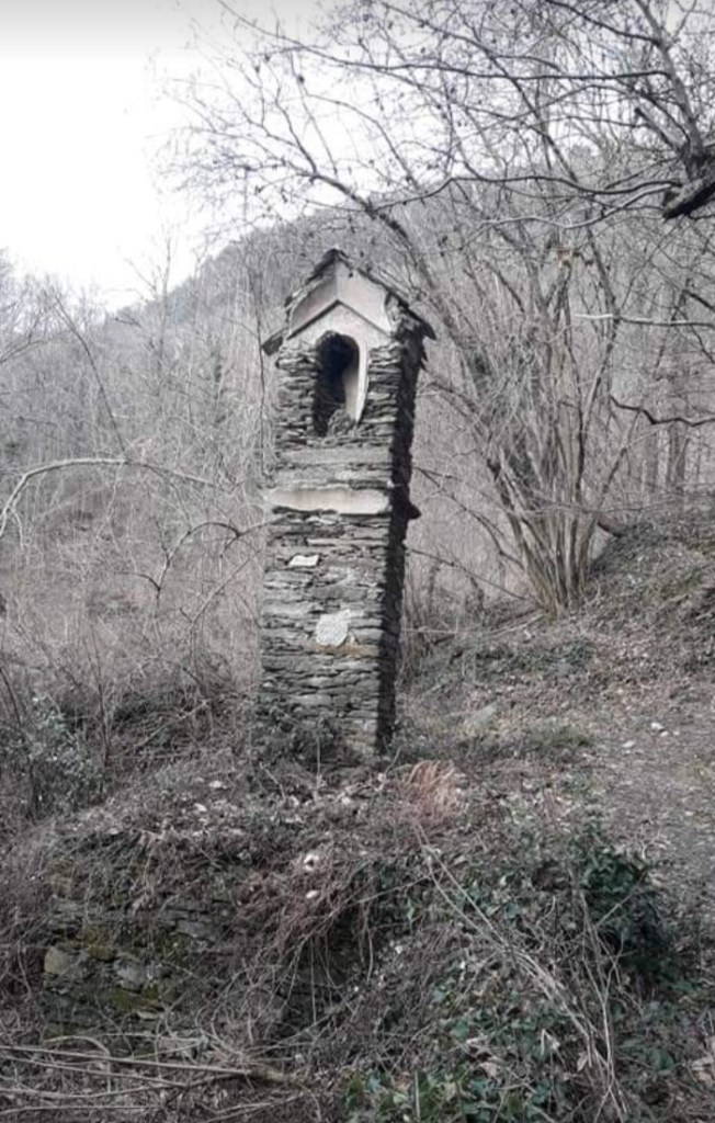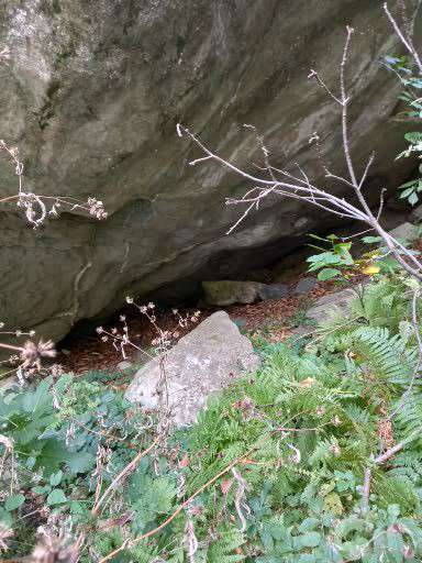 A lato del pianoro la grotta una dei tanti ripari sotto roccia tipici di questi monti, uno dei primi luoghi di devozione diventato poi culto cristiano, con la presenza di una nicchia votiva,
