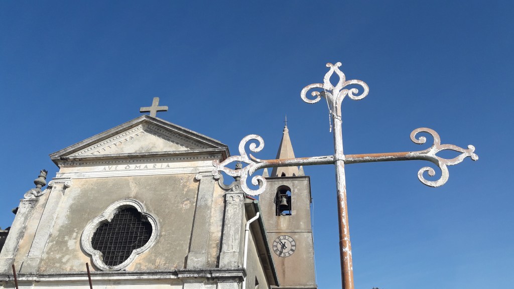 Santuario di Nostra Signora della Croce, la grande croce in ferro fu eretta per commemorare il passaggio su questa altura del papa Innocenzo IV il 7 ottobre 1244