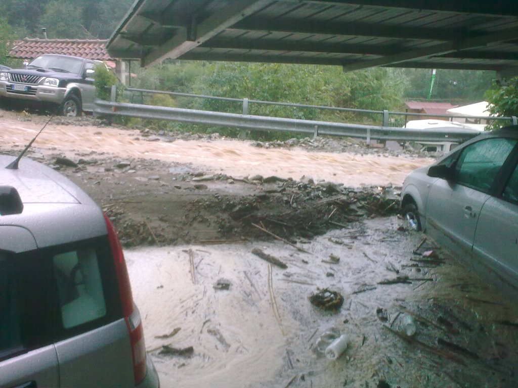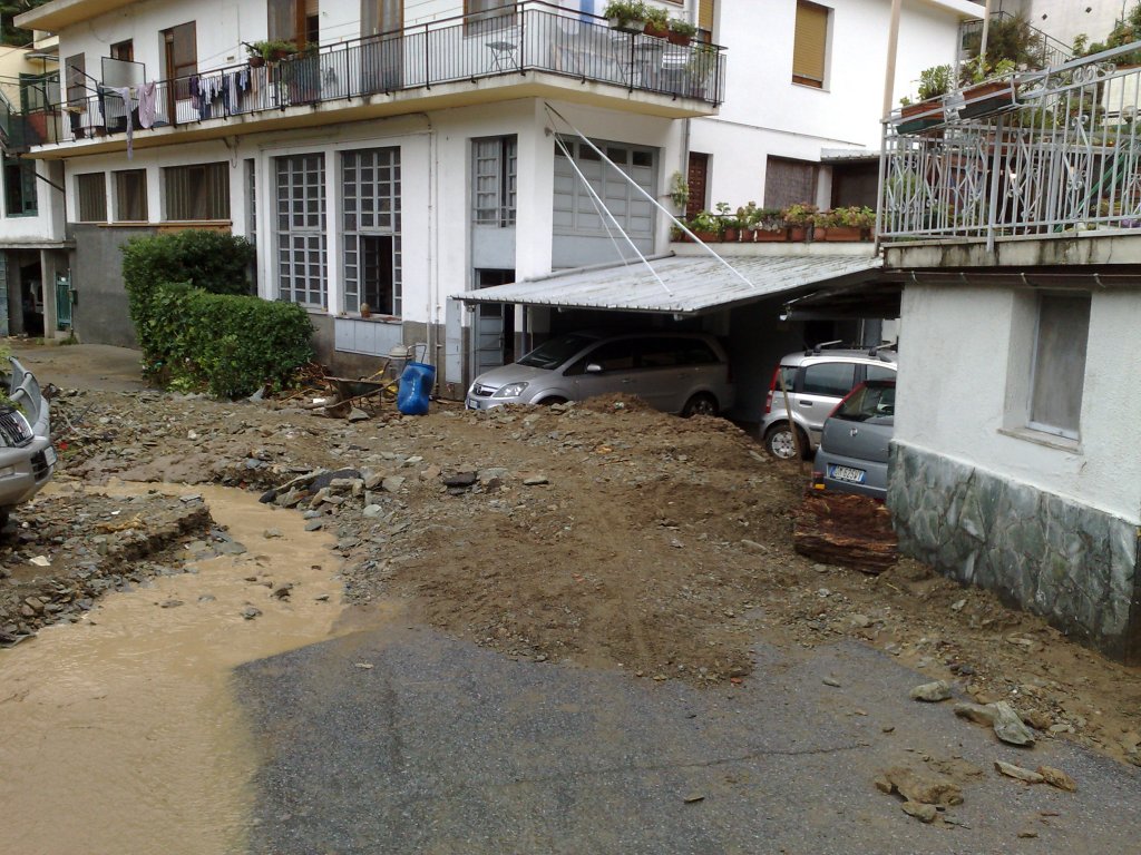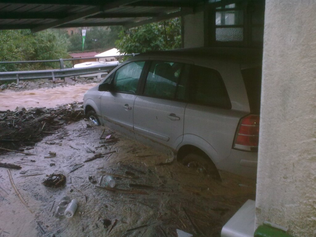 Con una furia devastante, fango e acqua invasero il nostro posto auto, fecero ruotare e galleggiare le nostre auto, come fossero barchette.