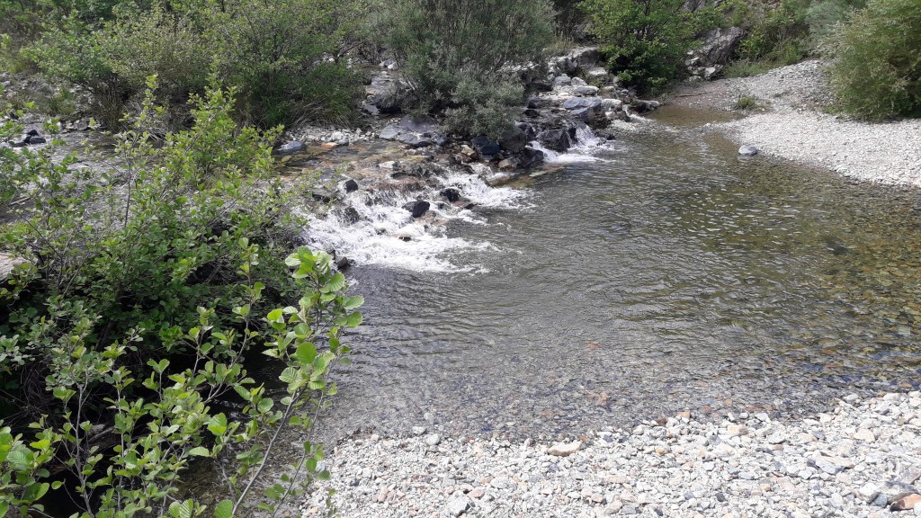 Molto problematico, effettuare il primo guado, ma poi sono le pietre a segnalare dove è possibile, saltando, guadagnare la riva opposta.