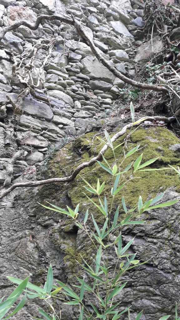 La ricerca di queste fonti idriche fu oggetto di alcune escursioni effettuate con l’amico Germano Gadina proprietario di una bella azienda agricola, au Cian du Timmu, inoltrandoci in zone abbandonate dalle attività umane e oramai completamente invase dalla vegetazione, scoprimmo i grandi terrazzamenti dai Funtanin, testimonianze di un passato di estese colture sulle pendici del Monte Grosso.