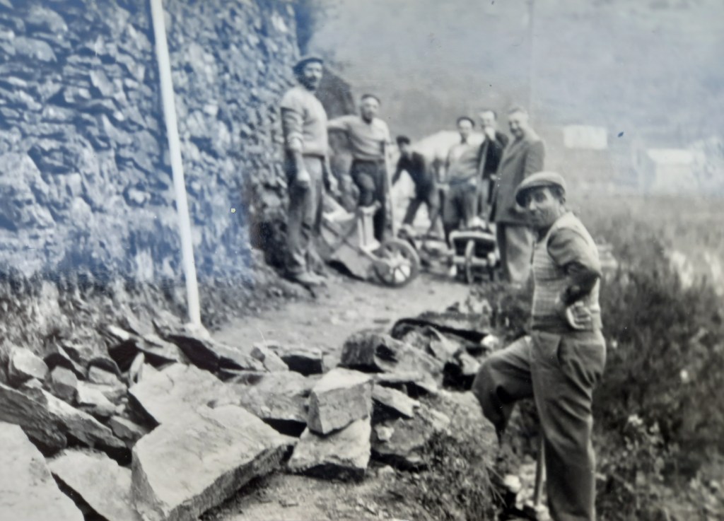 Altri tempi, dove la gente partecipava di persona, manualmente per l’esecuzione di opere destinate al bene di tutti, esisteva la solidarietà quella vera quella del buon vicino di casa erano momenti conviviali, dove spesso al termine di una giornata di lavoro ci si ritrovava sotto ad un pergolato o in un prato a mangiare e bere fra chiacchere e risate.