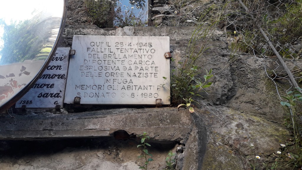 Con Roberto si parla degli anni del conflitto mondiale, quando nella zona a ridosso del Colle di S.Donato, c’erano diversi insediamenti militari, nei pressi della Ciusa da Fabrica, c’era una batteria contraerea, mentre nell’ex Convento delle Suore di Maria Ausiliatrice alloggiavano degli ufficiali tedeschi, i soldati tedeschi e le milizie fasciste, avevano requisito anche il mattatoio pubblico nel Parasio, qui erano tenuti i cani per ricerca, ma divenne anche una prigione dove erano interrogati gli oppositori al regime fascista e i partigiani o sospetti tali, catturati a seguito di delazioni o di rastrellamenti
