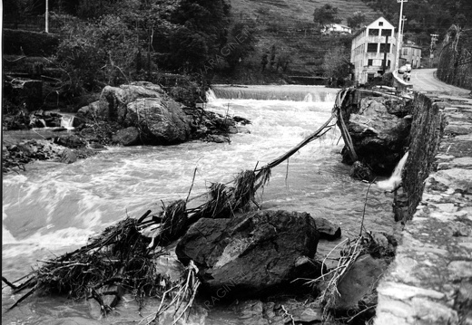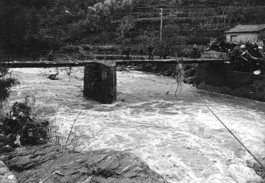 Novembre 1968 la piena del fiume ha divelto il ponte in ferro in località Frati sullo sfondo la Cartiera Piccardo in località Defissi.