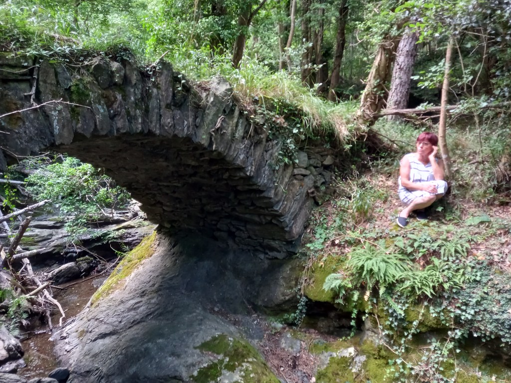 Parlo del mio girovagare per strade e boschi, dove ci sono molte testimonianze del passato, spesso dimenticate e lasciate all’oblio del tempo, a proposito di questo, Giovanna mi fa partecipe di una sua “scoperta” accompagnandomi a vedere un antico ponte, con due edicole votive poco lontano dalla loro abitazione, ovviamente quasi del tutto inglobato dalla vegetazione.