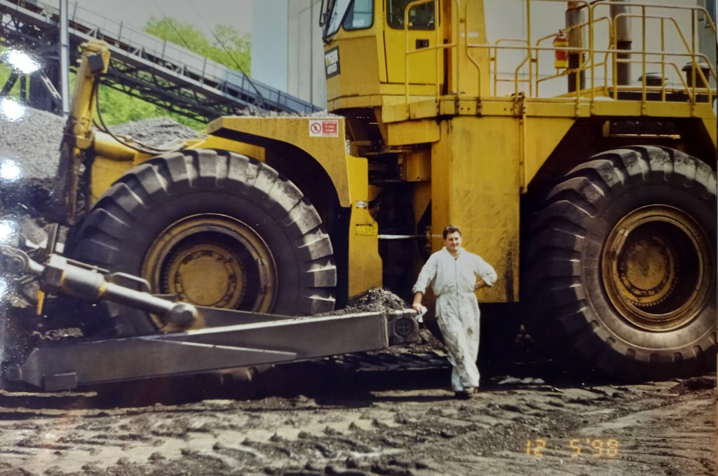 Io e il dozer CAT 690D nel parco carbone della Centrale Termoelettrica Vado Ligure