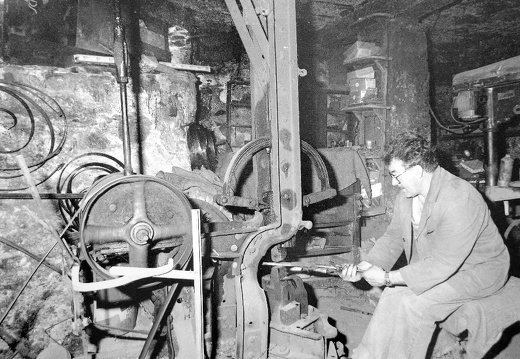Una di queste macchine, un maglio è ancora presente, ed espleta egregiamente il suo compito, non più azionato dall’energia idraulica, ma da un motore elettrico.